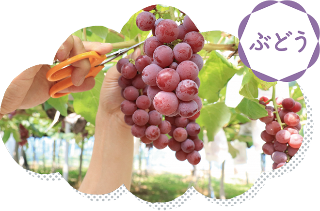 あずましずく、ピオーネの全ての品種を当園では種無しで栽培しておりますので、お子様でも一人で食べることができます。