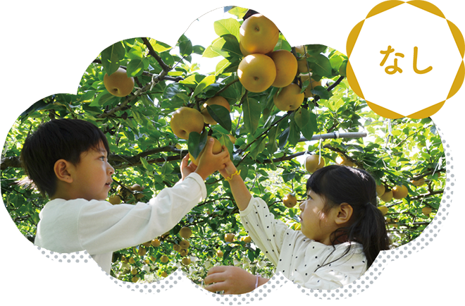 上品な甘さ、爽やかな香り、歯ざわりの良い食感で人気の高い梨も、当園では6品種育てています。梨には解熱作用や疲労回復の効果があり、肉料理などと一緒に食べれば、タンパク質分解酵素により消化を助ける効果もあります。